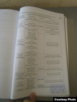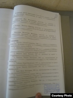 Фото списка попало в редакцию Крым.Реалии. В списке также значится имя Александра Костенко, который в ходе громкого дела в Крыму за «избиение» «беркутовца» на Майдане по представлению российского прокурора Поклонской уже осужден к 4 годам и 2 месяцам тюрьмы.