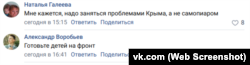 «Готовьте детей на фронт», – пишет Александр Воробьев.