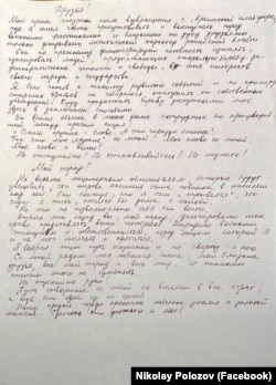 Заявление крымскотатарского активиста, политика и журналиста Наримана Джеляла, арестованного в Крыму, опубликовал 11 сентября адвокат Николай Полозов на своей странице в Фейсбуке.