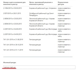 Согласно процедуре, блокирование доступа к ресурсу может быть на основании решения суда о признании информации запрещенной к распространению в России. Также интернет-ресурсы могут вносить в реестр запрещенных в России и без решения суда – по представлению органов прокуратуры.
