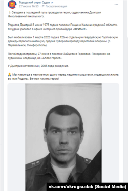 Летом этого года погибло еще несколько жителей Судака, по некрологам которых видно, что они были привлечены к войне по мобилизации в разные периоды. Судакчанина Максима Дульнева отправили на войну в марте 2023 года, живший в Судаке донеччанин Максим Домбровский был мобилизован в августе 2022 года. Родившийся в Старом Крыму Иван Муравецкий погиб в июле 2023, провоевал восемь месяцев, соответственно, был мобилизован в декабре 2022 года.