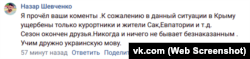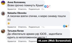 В группе «Инцидент Крым Симферополь Севастополь ДТП ЧП», известной «Z-патриотизмом» ее администраторов, обсуждение перешло в ожесточенную перепалку со взаимными оскорблениями со стороны украинских и российских пользователей. Привести примеры этих комментариев из-за этических причин невозможно.