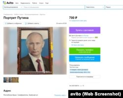 «Портрет Владимира Владимировича в рамке. Крепеж присутствует. Состояние: б/у», – говорится в объявлении.
