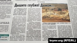 «Крымская правда» в статье «Дышите глубже! Дымом...» сообщает о жалобах жителей одного из микрорайонов Симферополя на едкий дым по вечерам. «Такую «газовую камеру» симферопольцам устраивают после 21.00 со стороны промышленной зоны между улицами Балаклавской, Коммунальной и переулком Производственным. Жители утверждают, что чувствуется химический запах. Люди начали обращаться во все инстанции. Они вызывали сотрудников полиции, писали в городскую администрацию. Однако результата не было. Тогда были составлены коллективные жалобы в Роспотребнадзор, Министерство экологии, прокуратуру Крыма и в департамент городского хозяйства Симферополя», – пишет издание. После проверки выяснилось, что источником выбросов вредных веществ оказались паровой котел и печь для сжигания отходов одного из местных предприятий. Как сообщается, котел опломбирован, работа печи приостановлена, выброс загрязняющих веществ в атмосферный воздух прекращен.