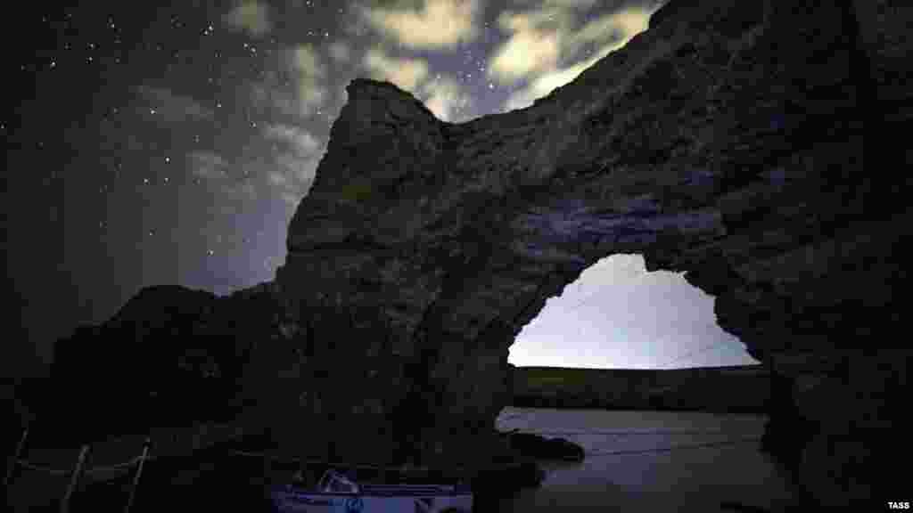 Звездное небо над гротом в рыбацком стане «Атлеш» на мысе Тарханкут (Большой Атлеш) в Черноморском районе.