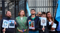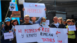 У здания посольства России в Киеве 5 сентября прошла акция в поддержку крымских татар, задержанных в Крыму 3-4 сентября.
