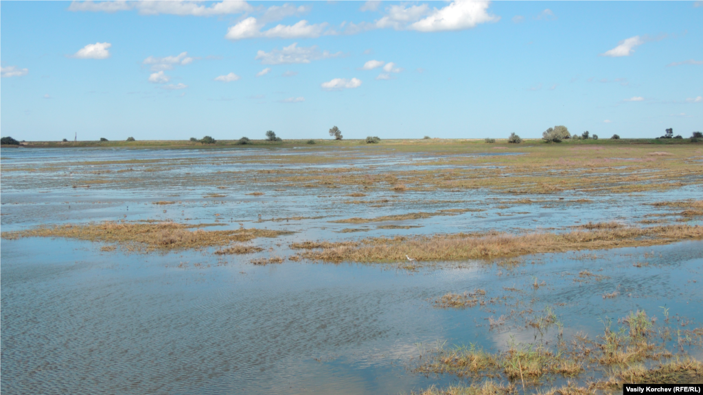 В результате летних проливных дождей наполнились лиманы возле села Курортное в Ленинском районе Крыма. В предыдущие годы из-за засухи на полуострове лиманы возле Курортного почти полностью пересохли. Часть территорий, на которых находились водоемы местные российские власти раздали под застройку. Еще часть стала площадкой, на которой ссыпали грунт и снятый асфальт при ремонте дороги на Курортное.