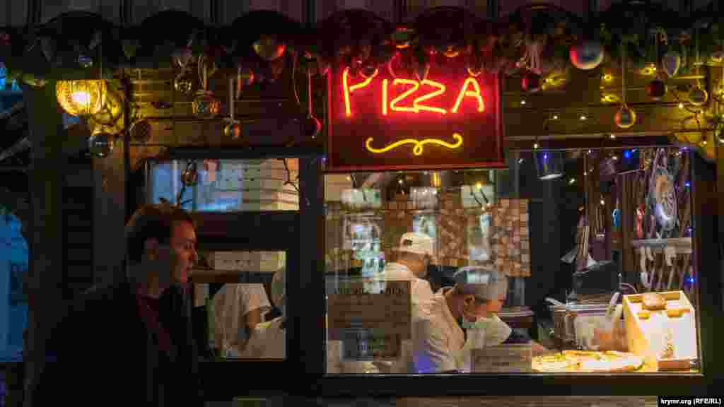 В приморском городе-курорте Алушта, впрочем, как и во всем Крыму, в самом разгаре новогодне-рождественские каникулы. Местные и приезжие в вечернее время в основном прогуливаются по набережной. Там ощущается праздничная атмосфера, несмотря на то, что российские власти полуострова отменили все массовые мероприятия из-за пандемии коронавируса.
