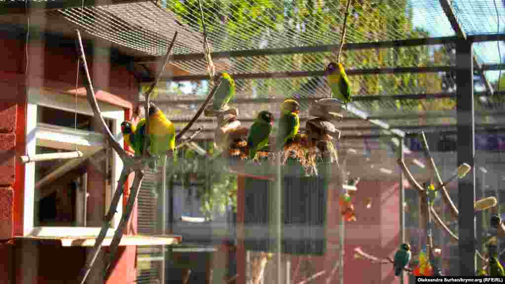 В Гагаринском парке Симферополя появился вольер с попугаями-неразлучниками. В загоне поддерживают необходимую для птиц температуру и запрещают кормить или отлавливать их.