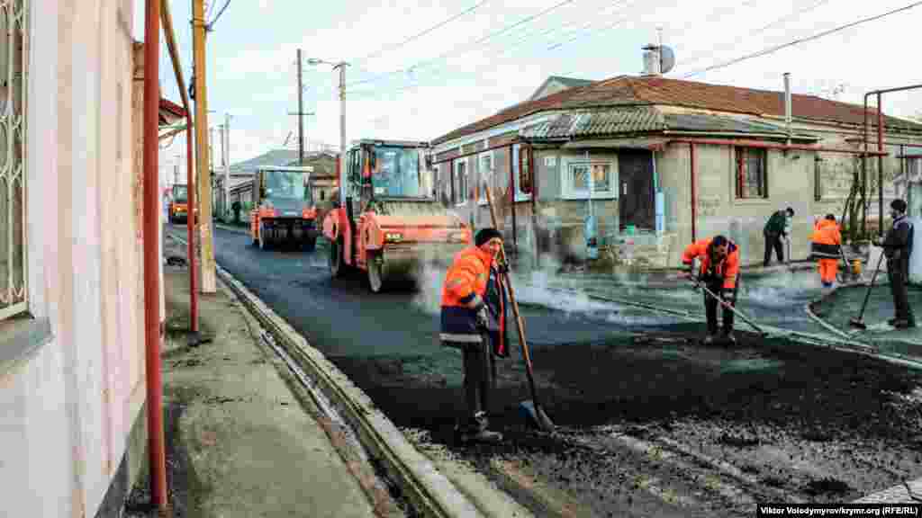 В Симферополе продолжается капитальный ремонт дорог на нескольких улицах города. Согласно заявлениям властей, в 20-х числах декабря все работы должны быть закончены. Однако в некоторых случаях сроки могут быть сдвинуты из-за дождя и снега. На улице Чехова в центре Симферополя дорожные службы уже несколько дней полностью меняют асфальт и бордюры. Делают это они даже в выходные дни, чтобы вовремя сдать объект. Успеют ли в намеченный срок?