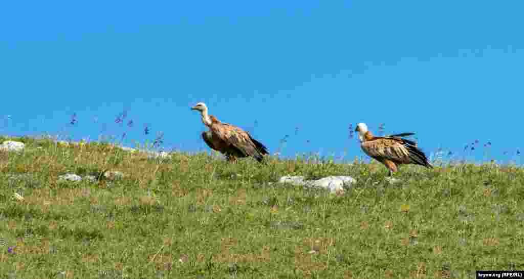 На краю долины у поселка Зуя, что в Белогорском районе Крыма, ранним утром местный фермер выпасал стадо коров. Неподалеку от этого места возле посадки акаций расположились около десятка белоголовых сипов.