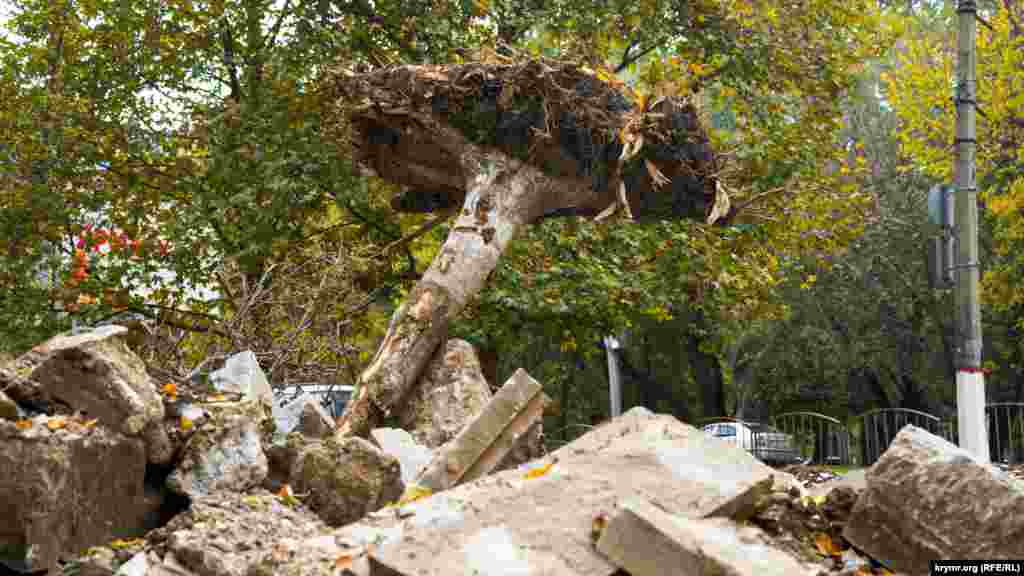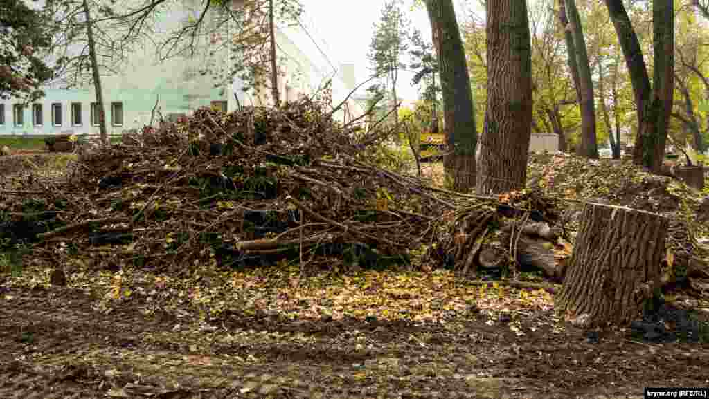 Корреспондент Крым.Реалии запечатлел, как исчезает роща возле симферопольского Дворца культуры профсоюзов.