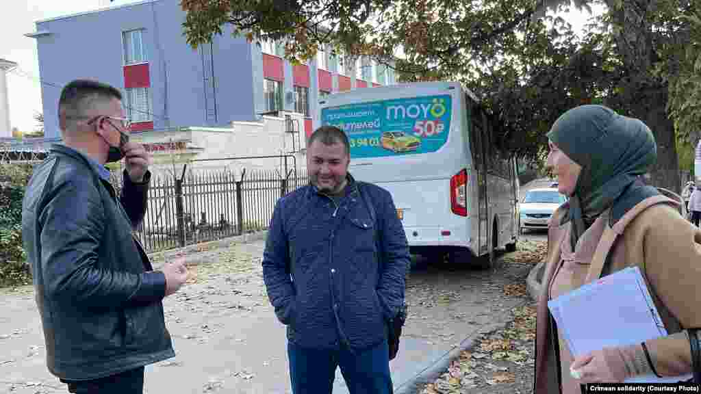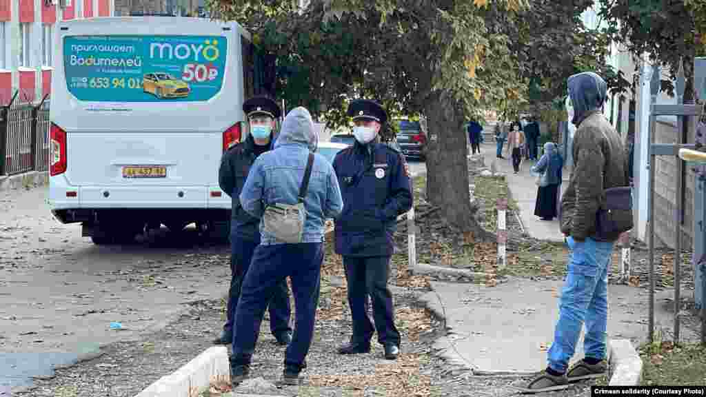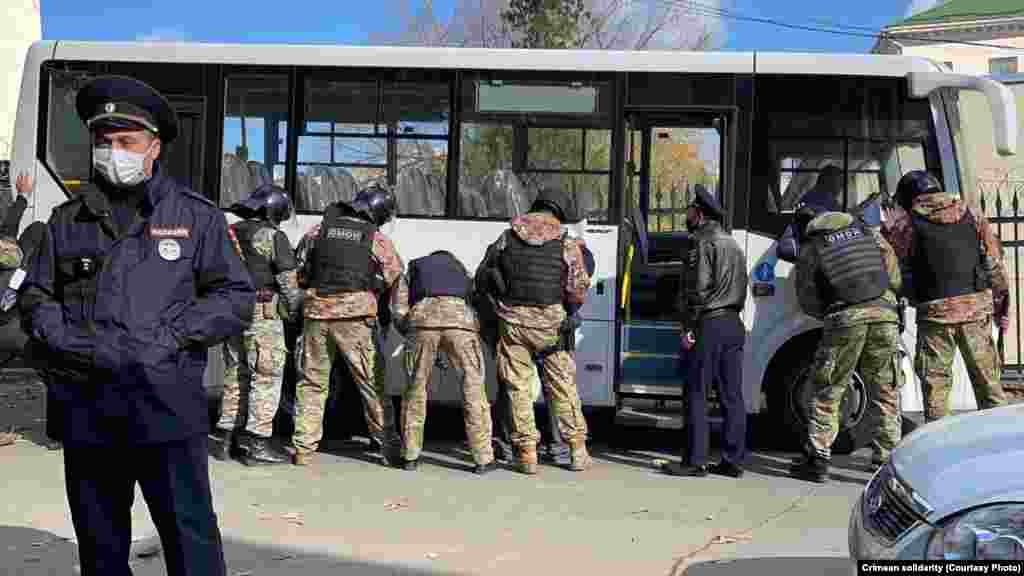 Утром 25 октября у здания Крымского гарнизонного военного суда в Симферополе собрались крымские татары, чтобы поддержать фигурантов красногвардейского «дела Хизб ут-Тахрир». В суде адвокаты по видеоконференцсвязи должны были принять участие в рассмотрении апелляционной жалобы на приговор по данному делу. Российские полицейские потребовали собравшихся разойтись, после чего сотрудники ОМОНа начали заводить собравшихся под судом в автобус, в том числе женщин.