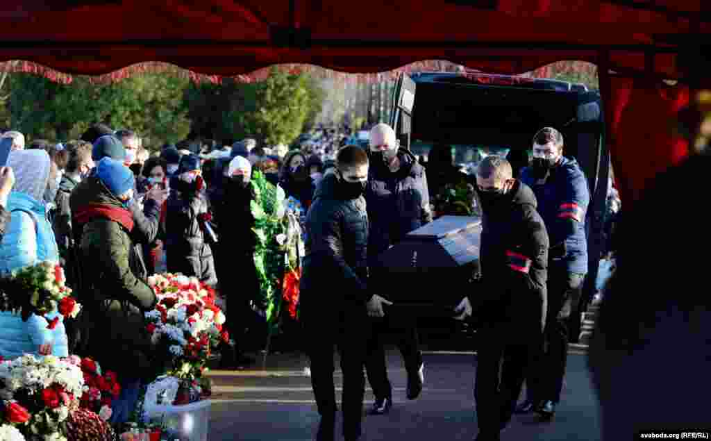 Около 5 тысяч человек попрощались с 31-летним Романом Бондаренко, который был похищен во дворе своего дома в Минске, доставлен в ОВД Центрального района, после чего был госпитализирован с черепно-мозговой травмой и прооперирован. Он умер после операции 12 ноября.