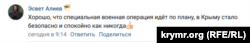 «Хорошо, что специальная военная операция идет по плану, в Крыму стало безопасно и спокойно как никогда», – вторит ему пользователь под ником Эсвет Алиев.