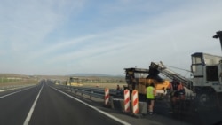 На обратном пути дорога была еще более пустынной. На отдельных участках трассы «Таврида» работает техника, рабочие укладывают финишный слой асфальтобетона на двух закрытых для движения полосах дороги.